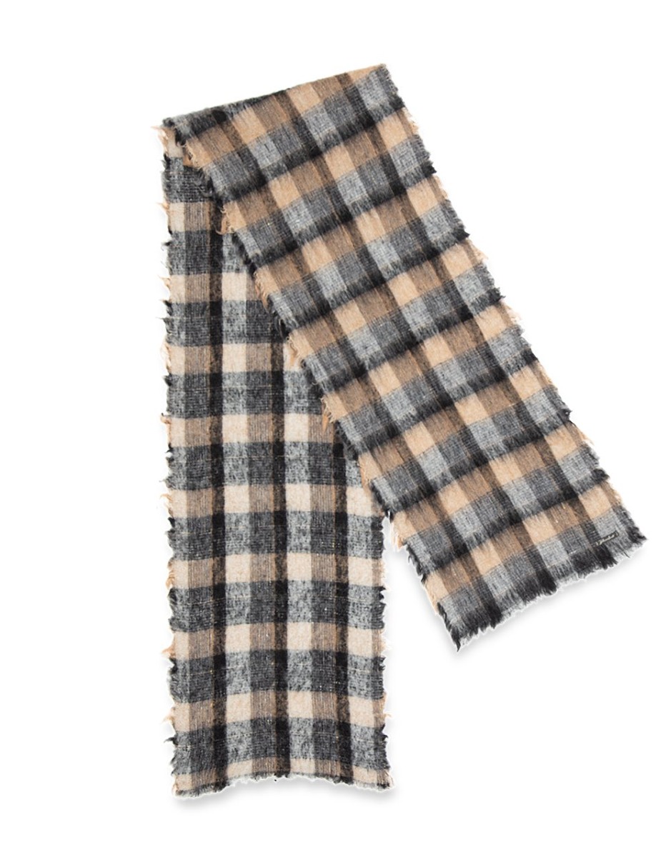 The Gix scarf in virgin wool and cashmere blend with a traditional checked pattern in beige and gray color, will be a true concentrate of style with which to complete your everyday looks. An unmissable classic that never goes out of fashion, embellished with a brushed nuanced finish on the ends.