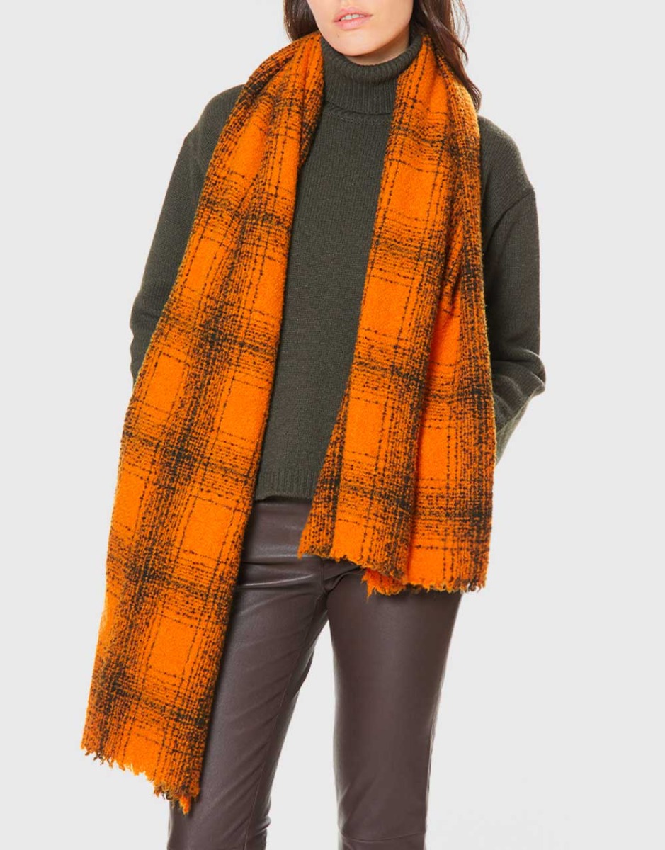 The softness of virgin wool and cashmere outline the features of our Mila scarf. Featuring a checked pattern on a white base and finished with a fringed profile, it will expertly enrich jackets and coats with an unexpected touch.
