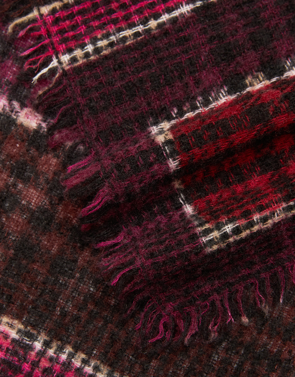 Faliero Sarti presents its collection of mini square scarves in wool, cashmere and silk blend for modern and resourceful women. The Mini Percy scarf is characterized by a size 65x75cm and a renewed pattern checked on the red and magenta tones. Perfect to be wrapped around the neck and wear it in a casual and contemporary attitude.