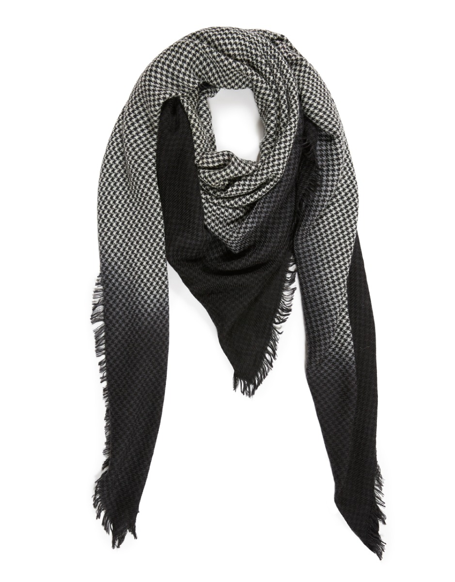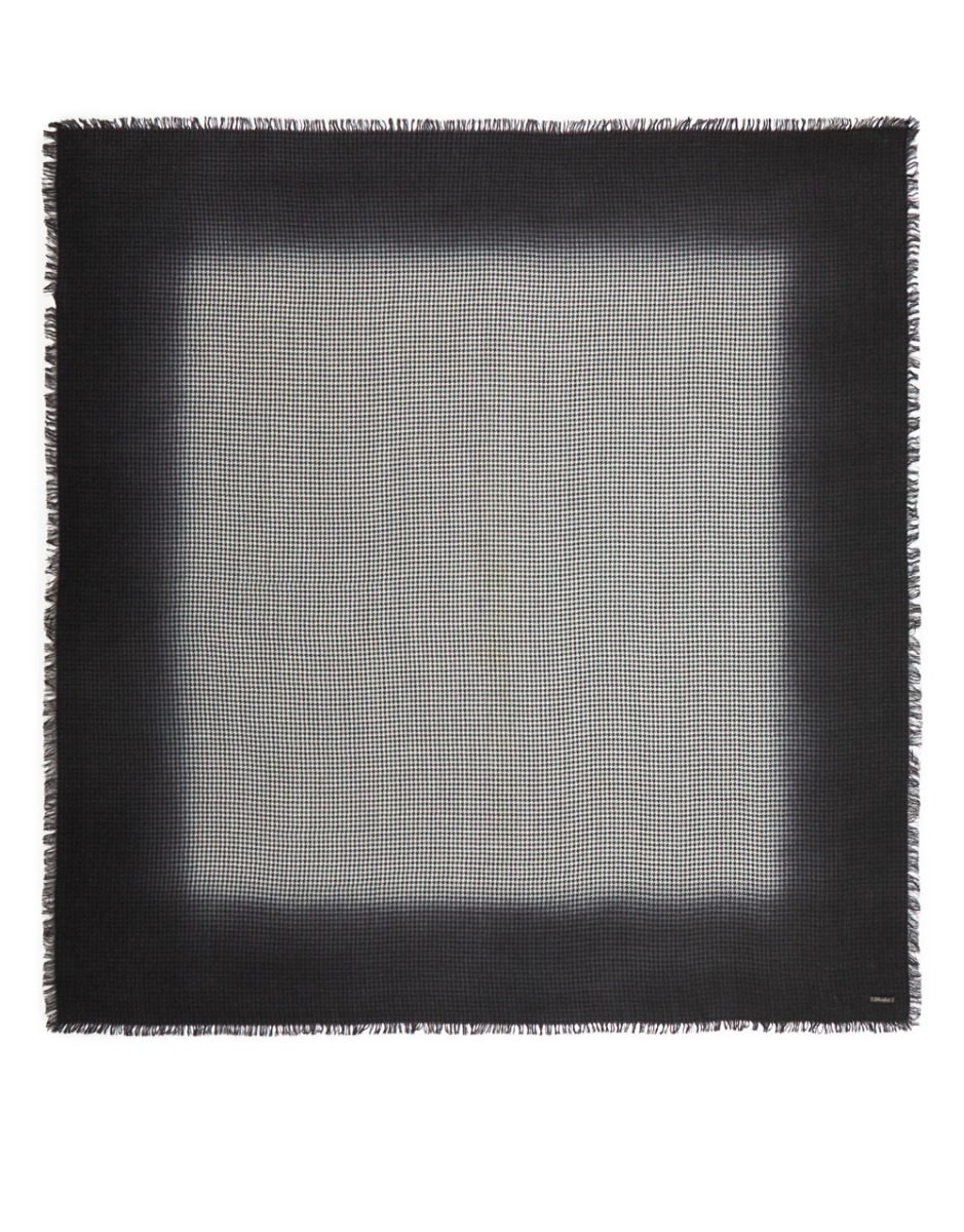 Made on a square base in virgin wool, cashmere and silk, the Nina scarf is characterized by a geometric print and framed by a gradation of color on the edges. Match it with blazers and coats for a refined look.