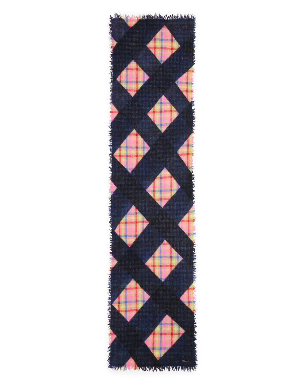 Faliero Sarti presents its collection of wool, cashmere and silk blend scarves for modern and resourceful women. The Petty scarf is characterized by a rectangular dimension and a checked pattern revisited by bright and trendy tones. Perfect to be wrapped around the neck and wear it in a casual and contemporary attitude.