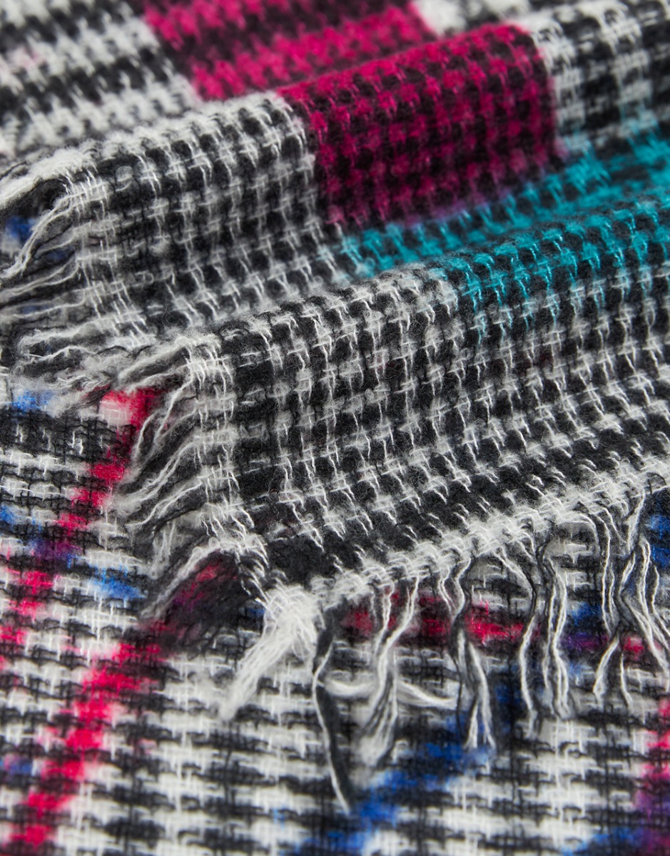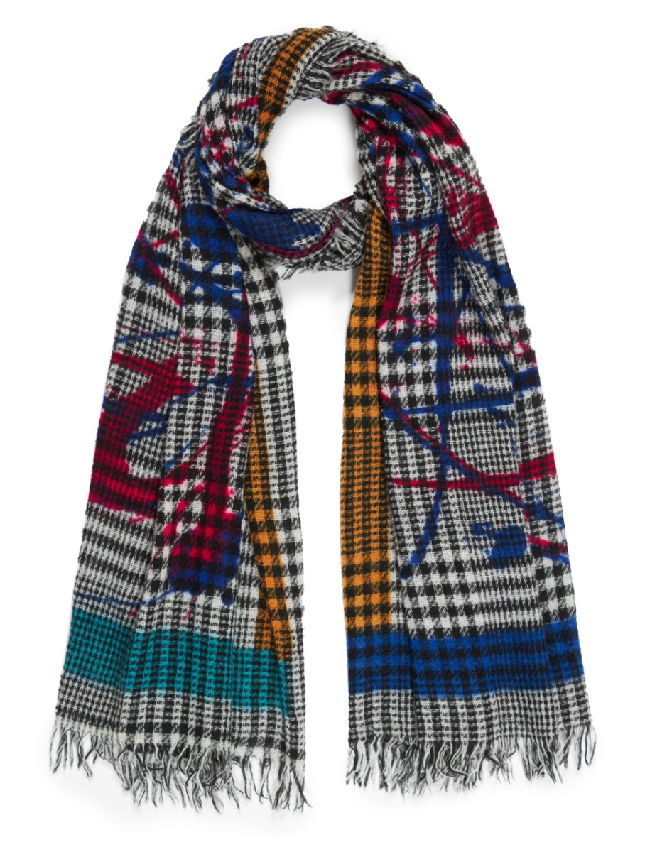 Complete your winter wardrobe with the Princy scarf made of a cashmere, wool and silk blend with fringes. The geometric pattern and colorful splashes of color make it perfect for breaking up monochromatic looks, giving immediate recognition in terms of style.