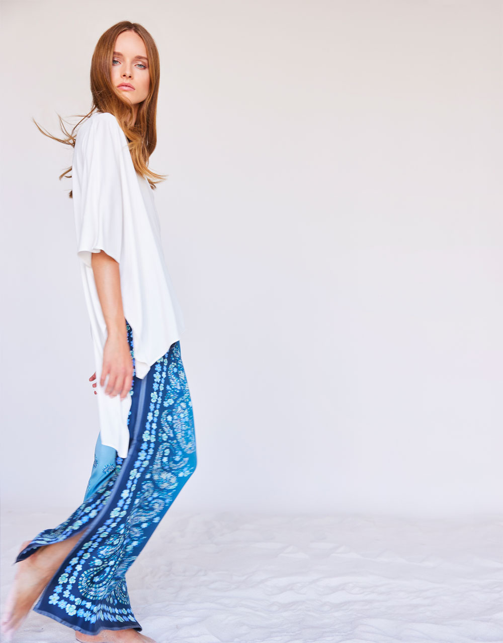 Among the must-haves of the collection we offer the Adriel scarf, the Ginevra in its gradient variations and the refined Enrica in cashmere and silk. The stoles are also embellished with prints created in collaboration with renowned artists and institutions, for a unique and distinctive accessory.