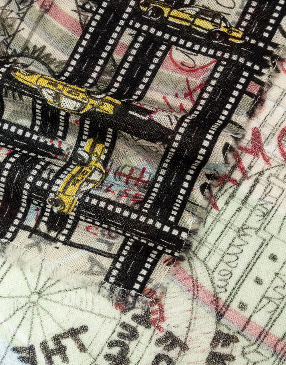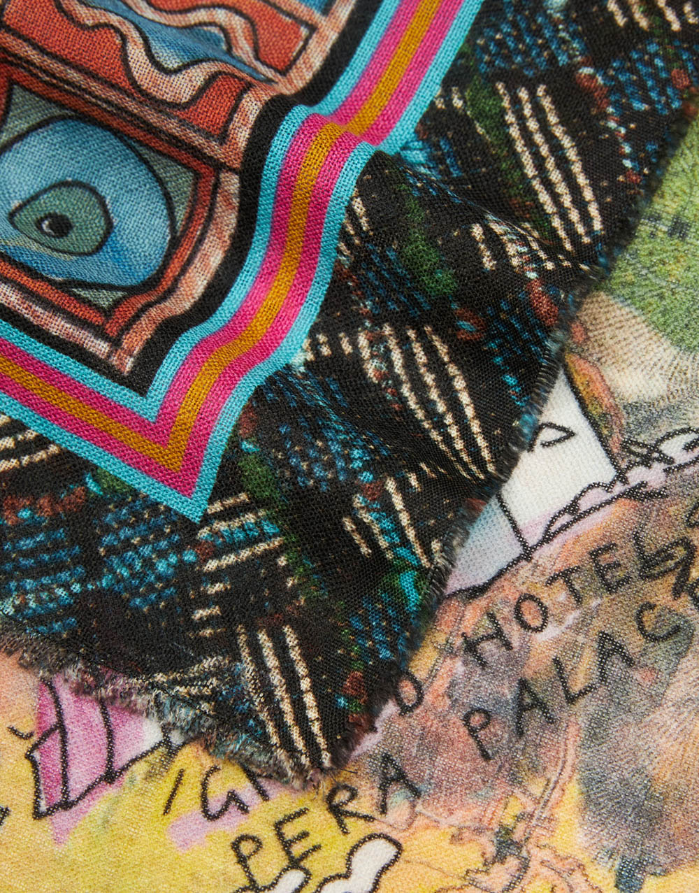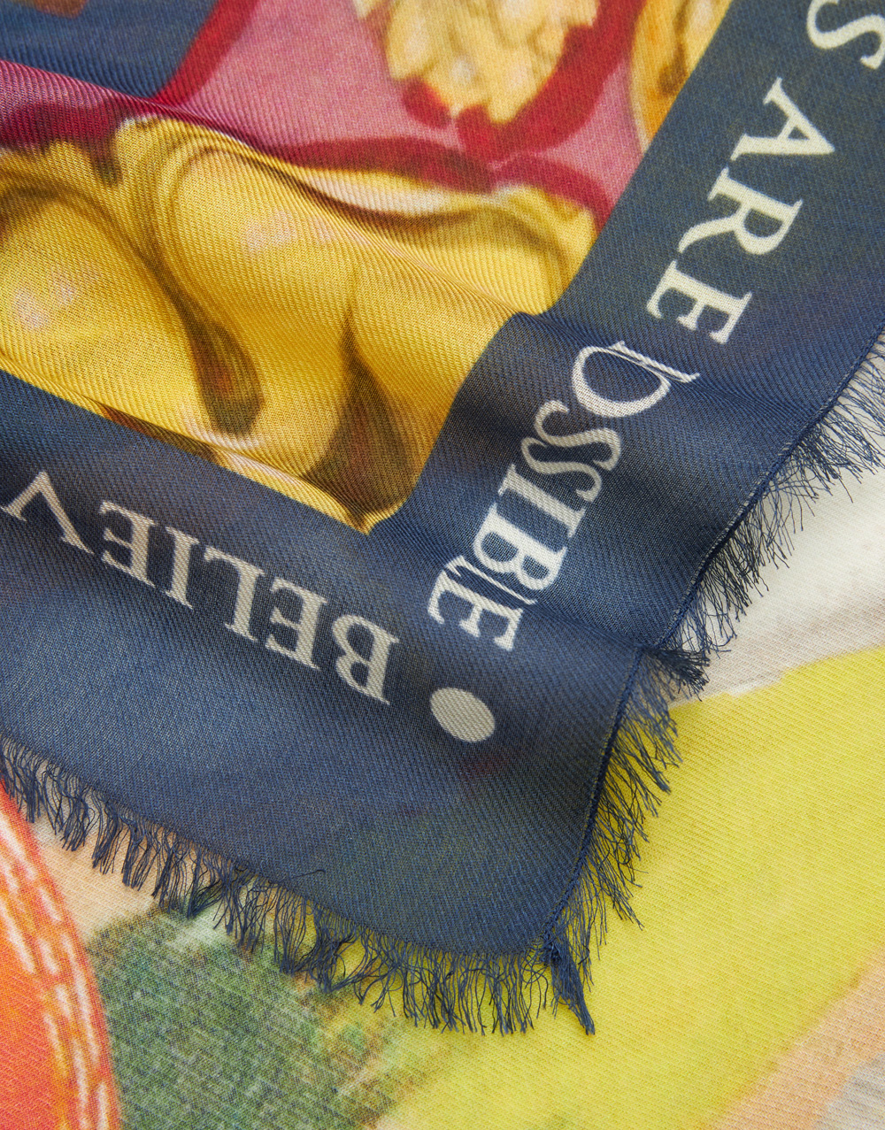 Among the must-haves of the collection we offer the Adriel scarf, the Ginevra in its gradient variations and the refined Enrica in cashmere and silk. The stoles are also embellished with prints created in collaboration with renowned artists and institutions, for a unique and distinctive accessory.