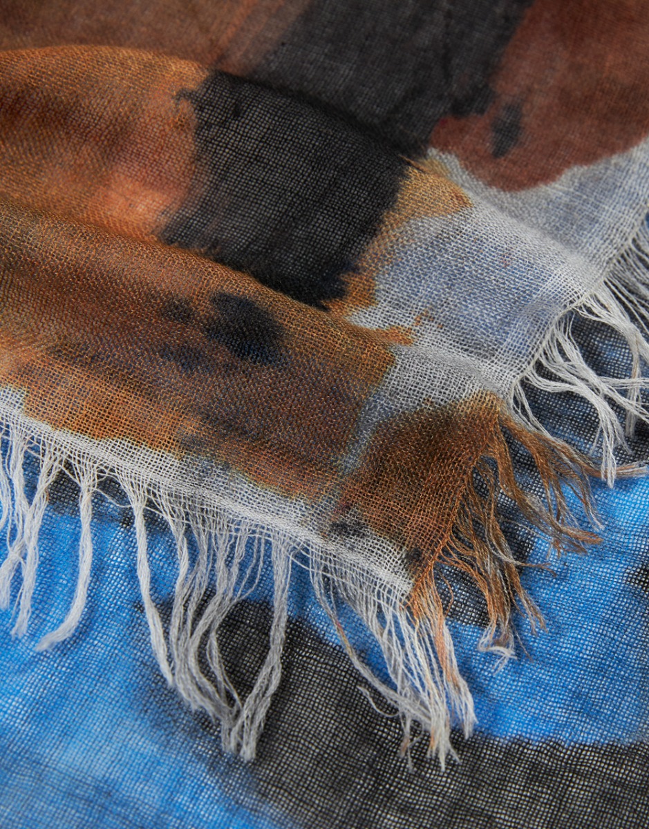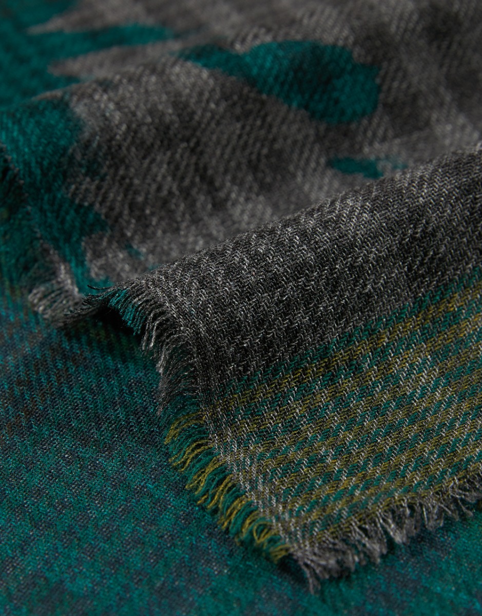 Square printed scarf in wool and silk blend