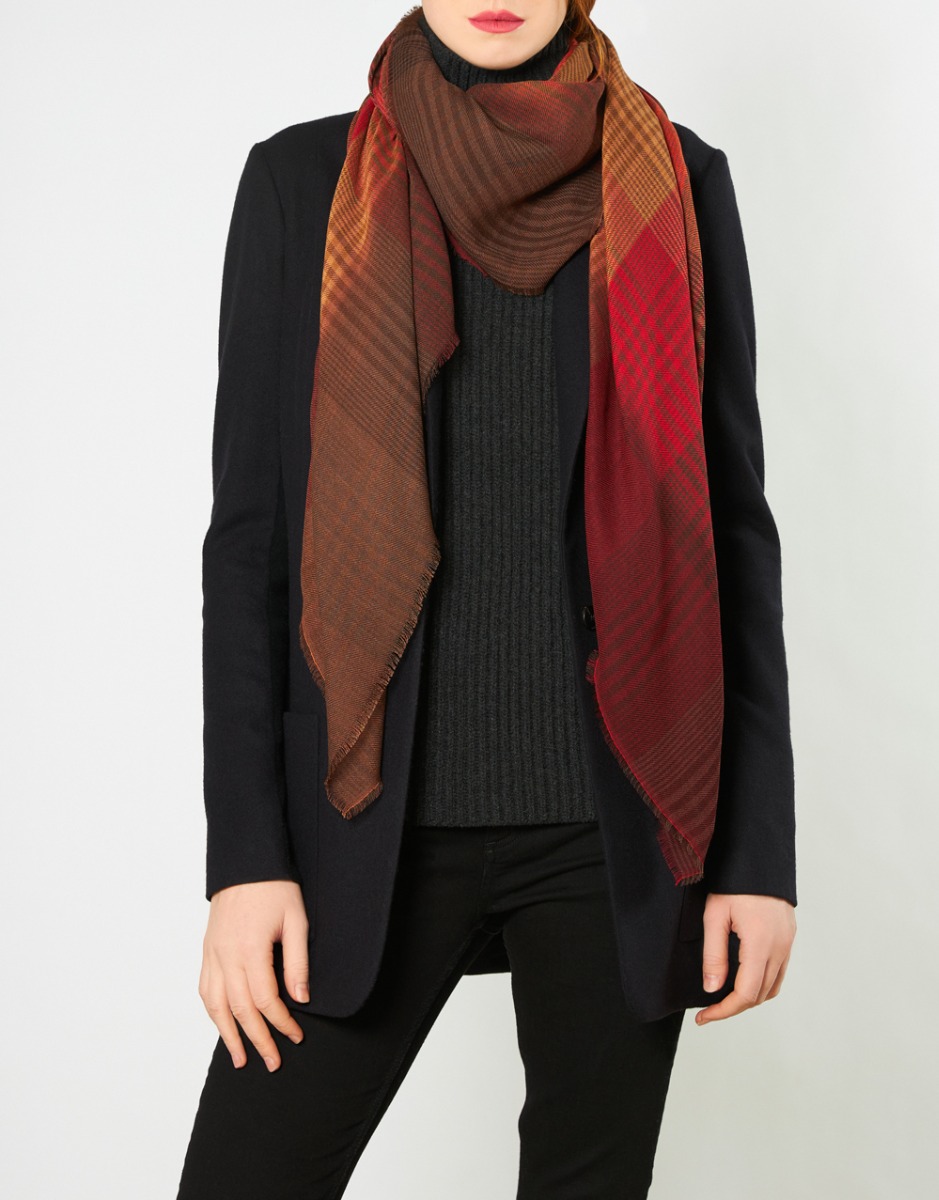 Checked scarf in virgin wool and silk