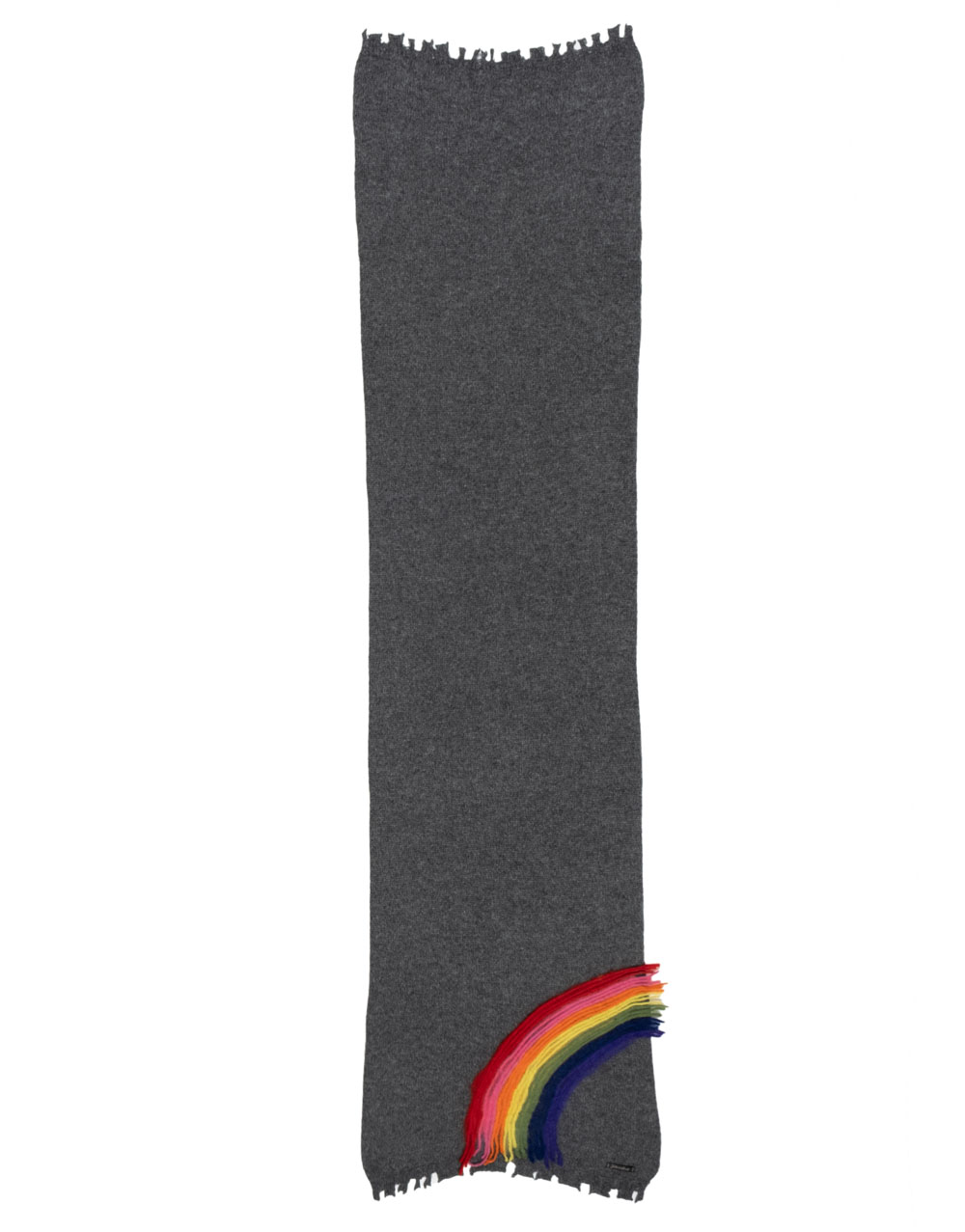 RainbowRectangular scarf in virgin wool blend with application. Size 190x40 cm.