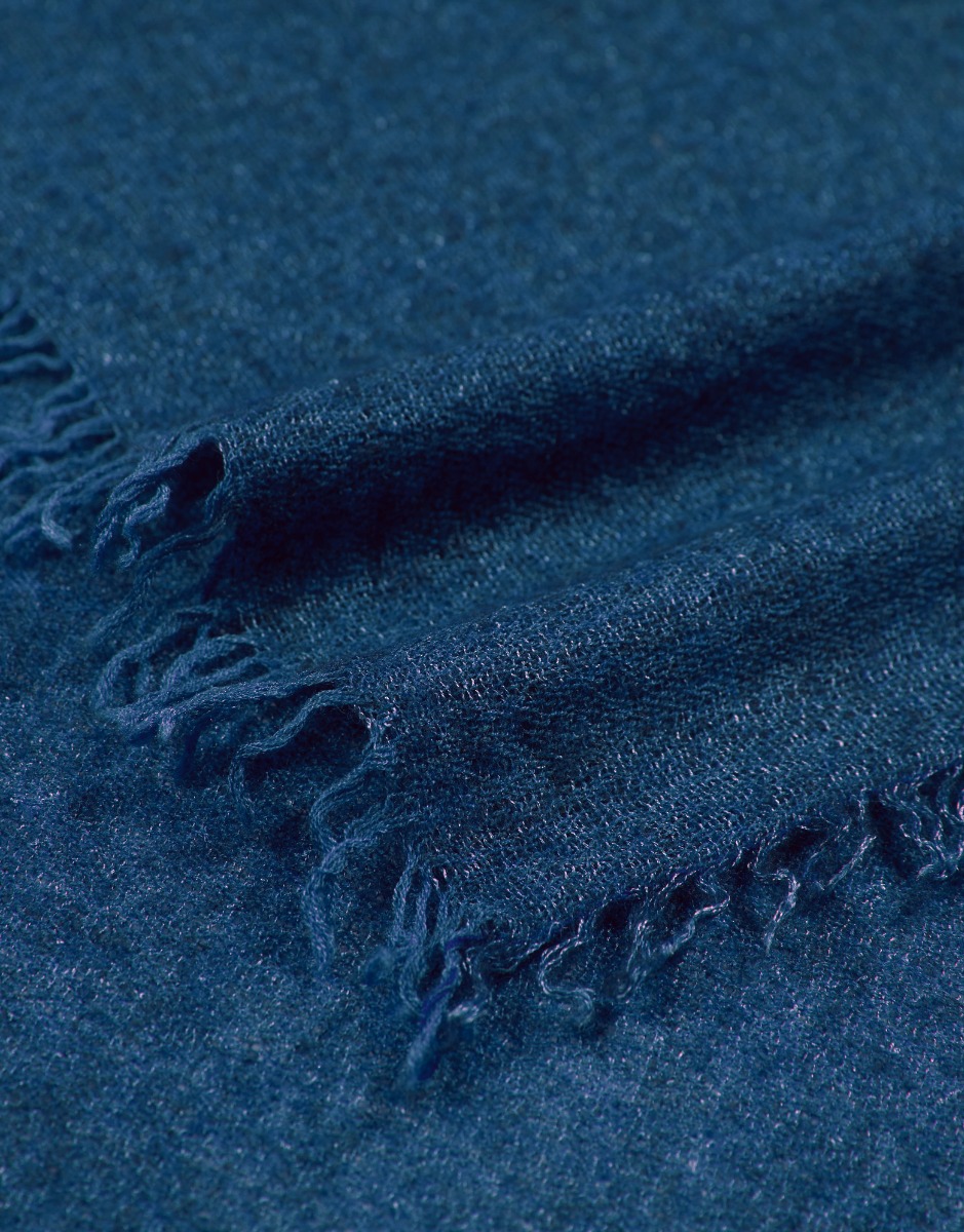 Rectangular modal and silk scarf with multicolor wool and fringes.