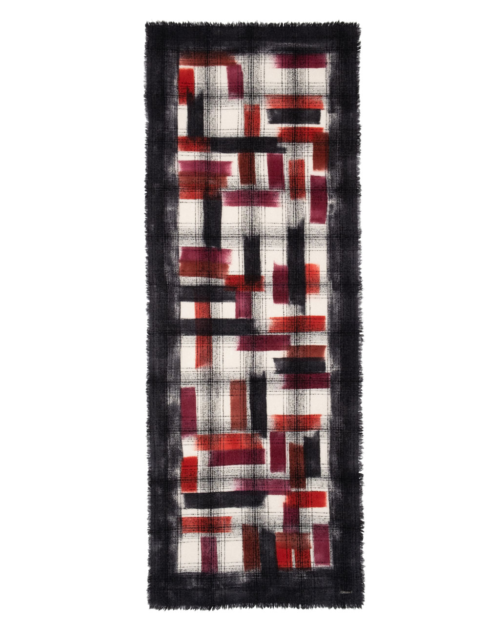 LerianaRectangular scarf in virgin wool blend with geometric pattern. Size 190x65 cm.