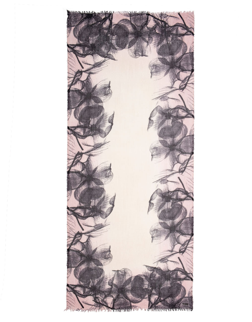IsyRectangular stole in virgin wool blend with floral print and sequins. Size 205x85 cm.