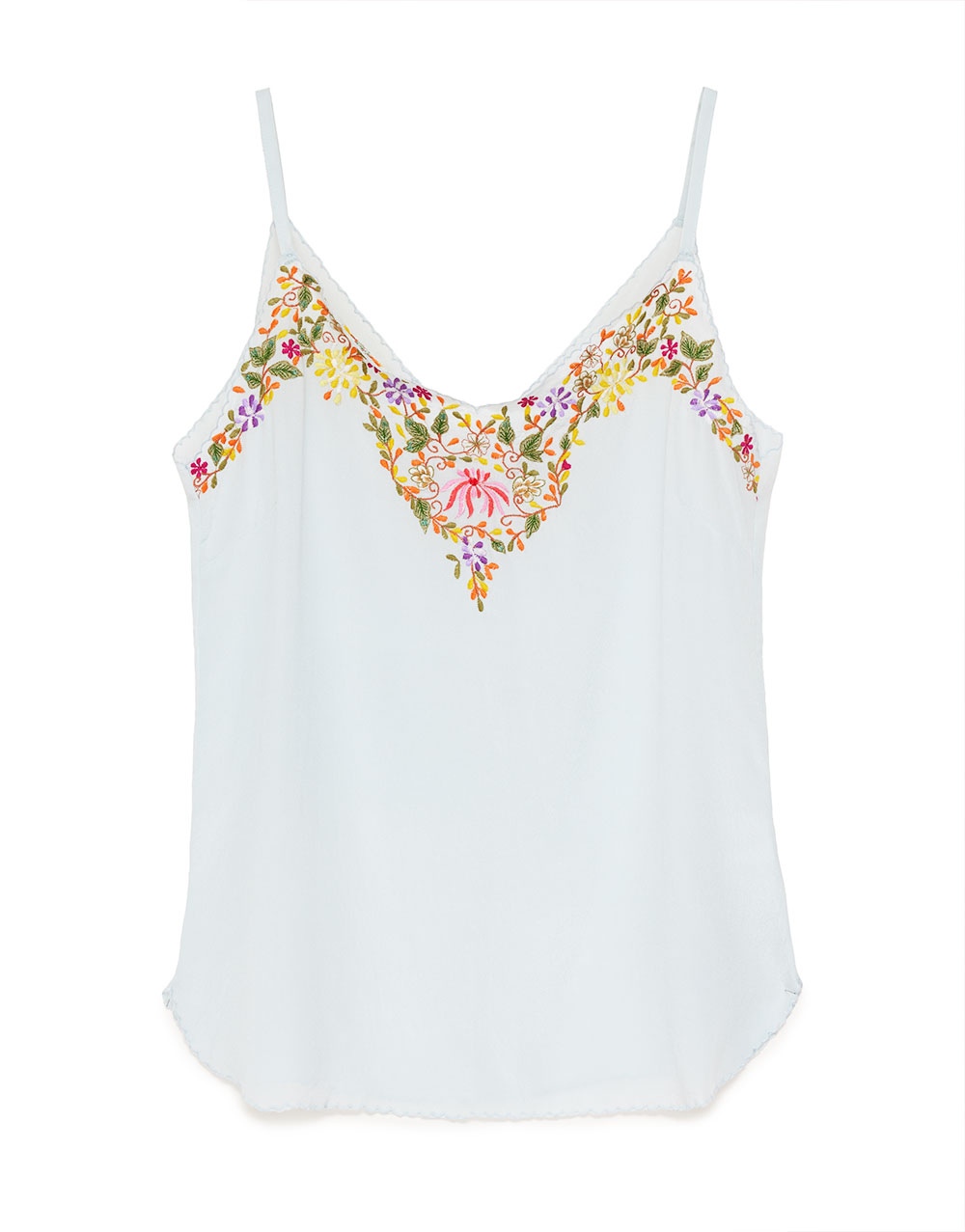 Silk top with floral embroidery