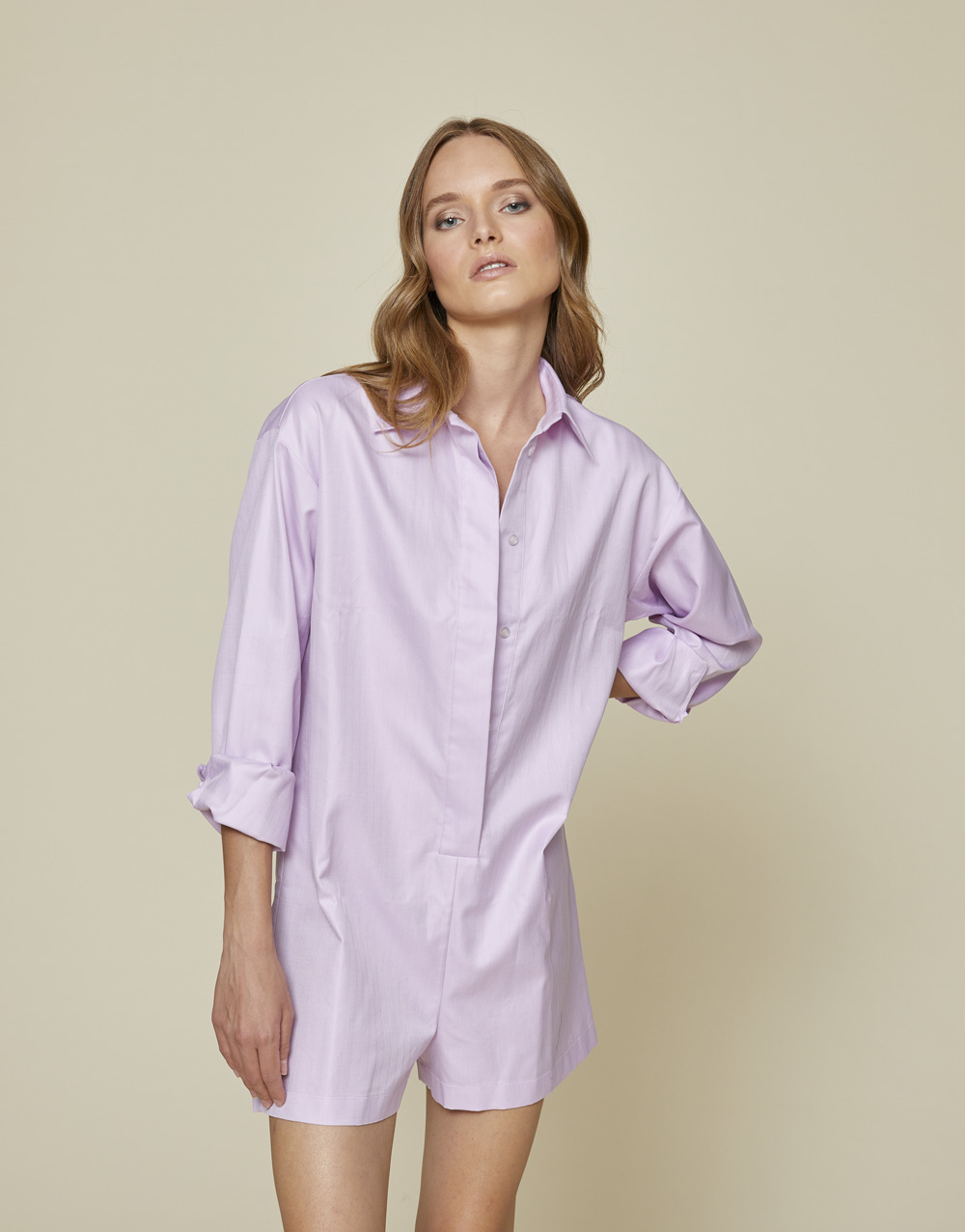 DESCRIPTION: Short jumpsuit in herringbone cotton