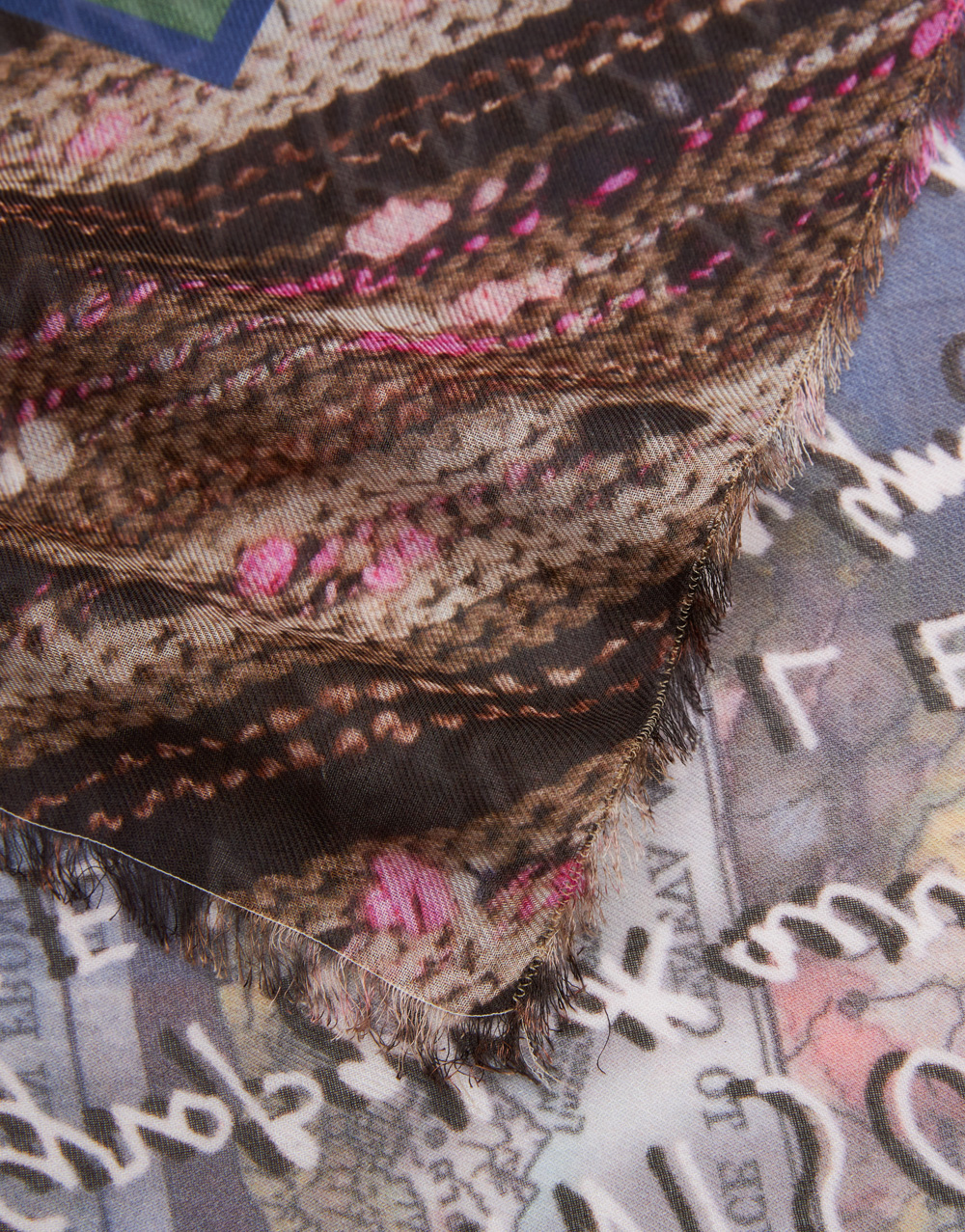 Among the must-haves of the collection we offer the Adriel scarf, the Ginevra in its gradient variations and the refined Enrica in cashmere and silk. The stoles are also embellished with prints created in collaboration with renowned artists and institutions, for a unique and distinctive accessory.