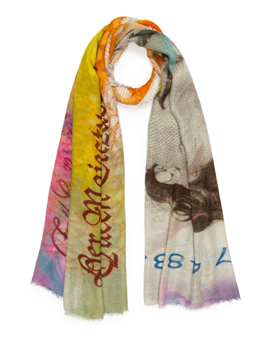 Among the must-haves of the collection we offer the Adriel scarf, the Ginevra in its gradient variations and the refined Enrica in cashmere and silk. The stoles are also embellished with prints created in collaboration with renowned artists and institutions, for a unique and distinctive accessory.