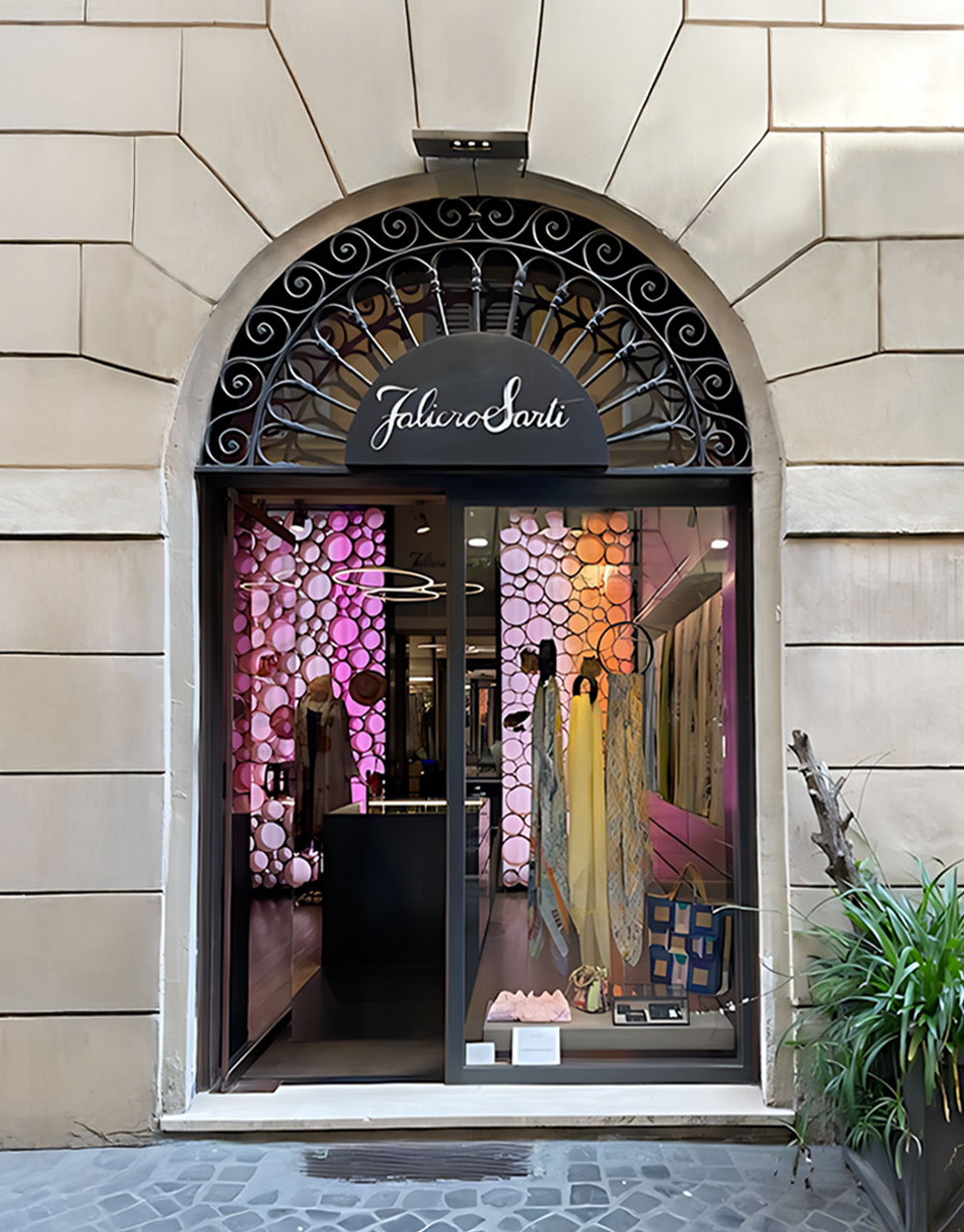 Nel cuore di Roma, la boutique di Faliero Sarti, dove la storia millenaria si intreccia con lo spirito del presente, la boutique Faliero Sarti accoglie i clienti in uno spazio in cui l’arte del tessuto incontra la grande bellezza. Ogni elemento è pensato per dialogare con l’atmosfera unica della capitale, raffinata e solenne.