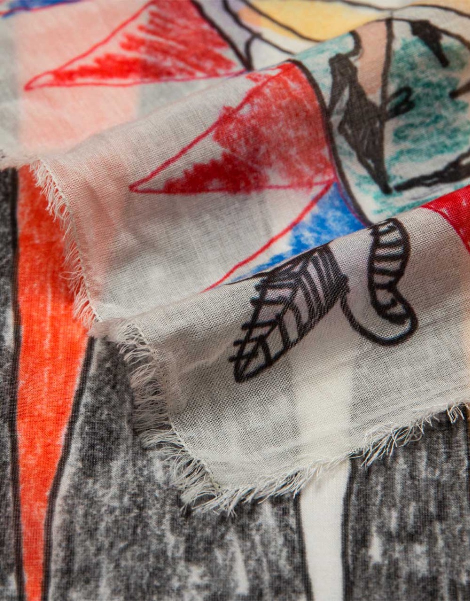 Tra le sciarpe della nuova collezione è possibile trovare imperdibili stole, impreziosite da stampe, realizzate in collaborazione con rinomati artisti e istituzioni, per creare accessori dal carattere unico e distintivo.