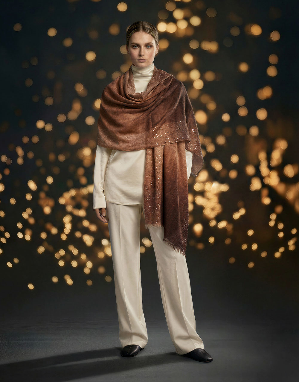 Tra i must-have della collezione troviamo il modello Adriel, realizzato in puro cashmere, Ginevra la stola degradè in misto modal e seta, e la raffinata sciarpa Enrica arricchita da frange.