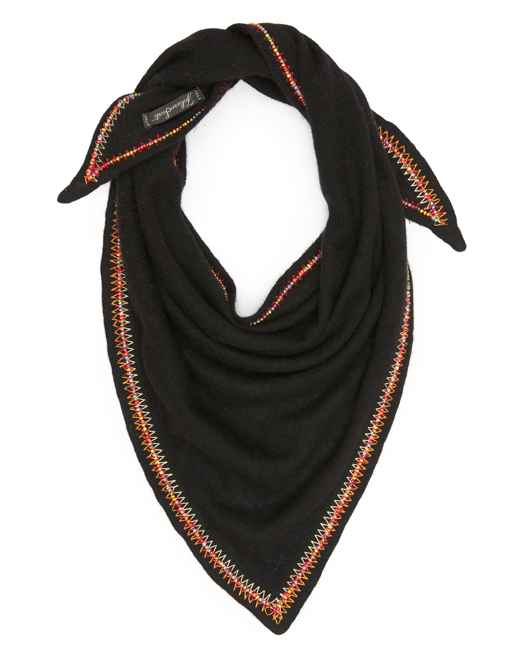 Discover the new accessory of the season: the Glam Triangle scarves. Design becomes the protagonist and changes shape, from iconic square to mini triangle. Jewel scarves which play with finishes, materials and colors turning into refined caresses of fabric. Made of fine materials such as cashmere and wool and embellished with crystals and refined decorations for a contemporary style.
